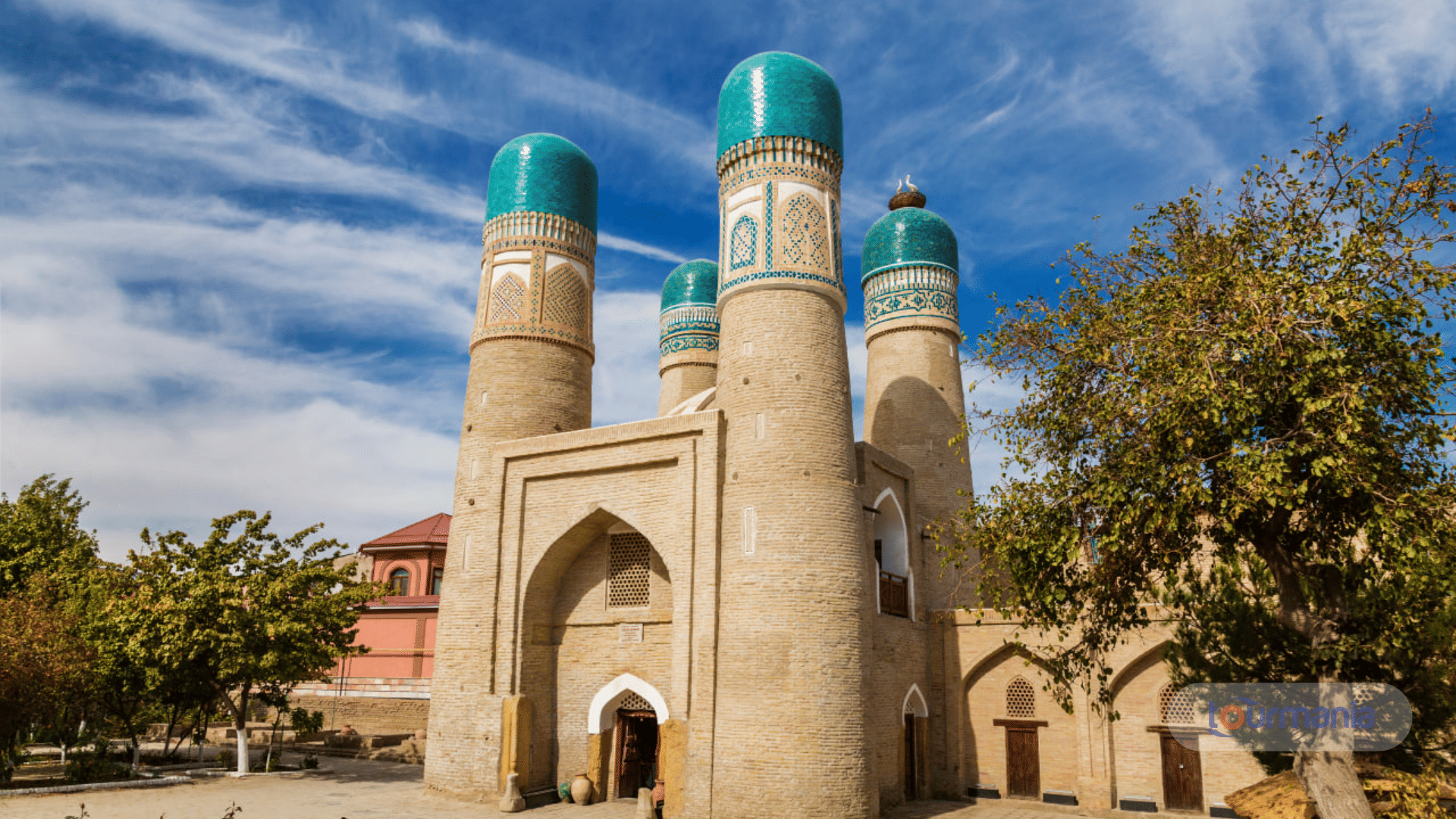 Chor Minor is a historic building located in the city of Bukhara, Uzbekistan. The name "Chor Minor" translates to "Four Minarets" in English, referring to the four distinctive towers (minarets) that are situated on the corners of the structure. The building is part of a madrasah (Islamic school) complex, which was constructed in the early 19th century, around 1807, during the reign of the Emir of Bukhara, Shah Murad.