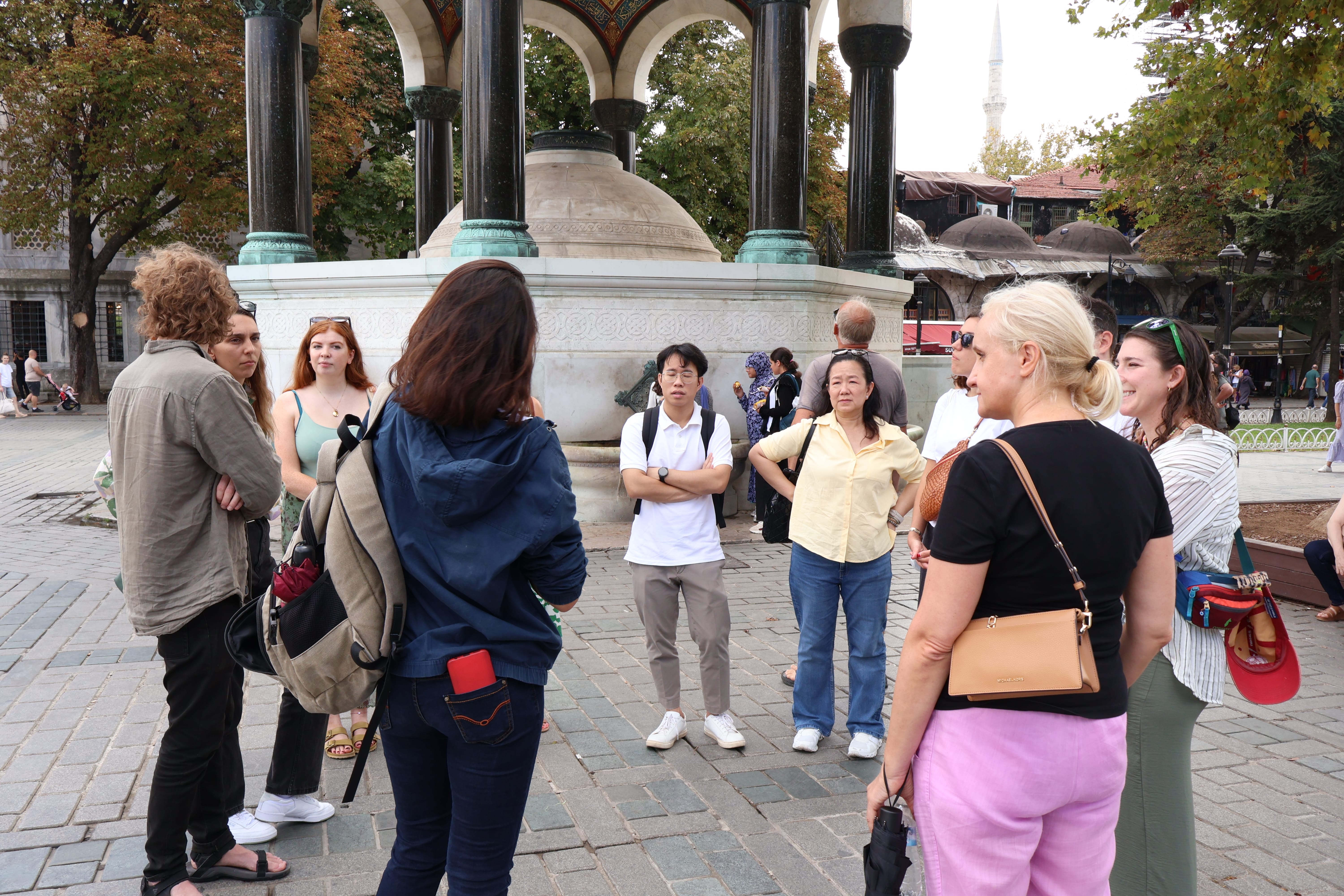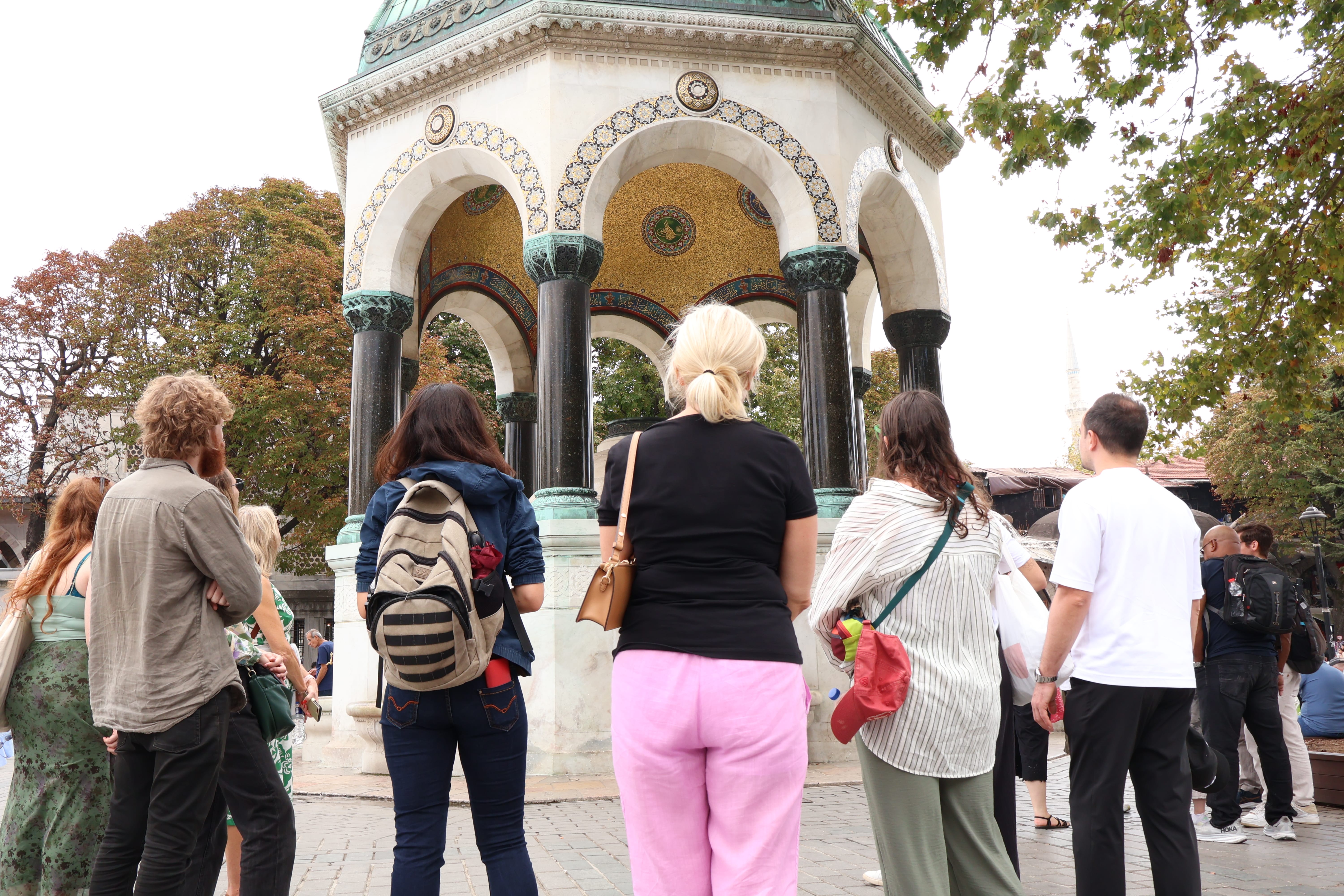Begin your walk in Sultanahmet Square, once the social and political center of Constantinople. Visit the Hippodrome, the former arena of chariot races, and see its remaining monuments, including the Obelisk of Theodosius and the Serpent Column. Stop at the elegant German Fountain, a symbol of Ottoman–German friendship.