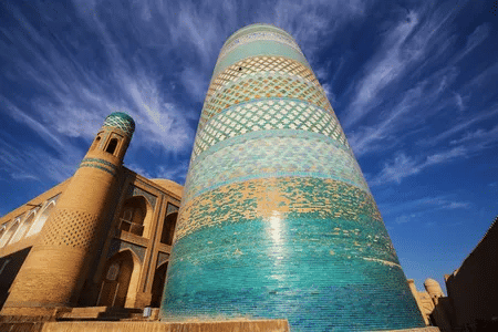 The Kalta Minaret is one of the most iconic landmarks in Khiva, Uzbekistan, known for its distinctive design and rich historical significance. It is located within the Itchan Kala (the walled inner city of Khiva), which is a UNESCO World Heritage site. The minaret stands out due to its unique appearance and unfinished construction, making it a fascinating piece of architectural history.