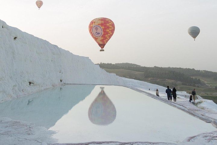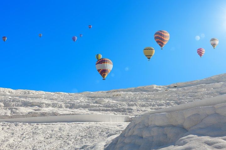 Get a unique view of Pamukkale from the air on this incredible hot air balloon flight. Fly over the white travertine pools of Pamukkale and the ancient ruined city of Hierapolis.