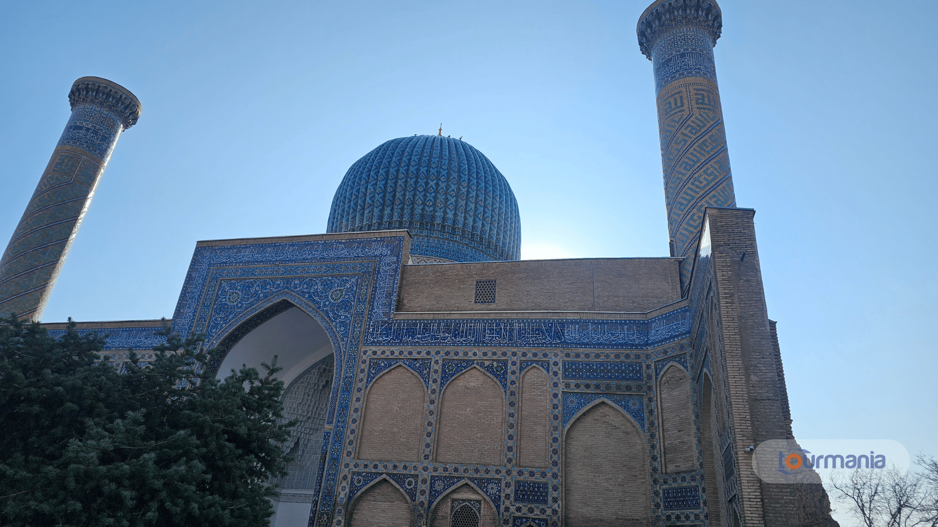 The Gur-e-Amir (meaning "Tomb of the King") is a historical mausoleum in Samarkand, Uzbekistan. It is the burial site of the famous conqueror Tamerlane (Timur), who founded the Timurid Empire in the 14th century and is regarded as one of the most significant figures in Central Asian history. The Gur-e-Amir is a magnificent example of Timurid architecture. It has a large, imposing dome, intricate tilework, and majestic minarets. The structure combines Persian, Turkic, and Mongol architectural styles.