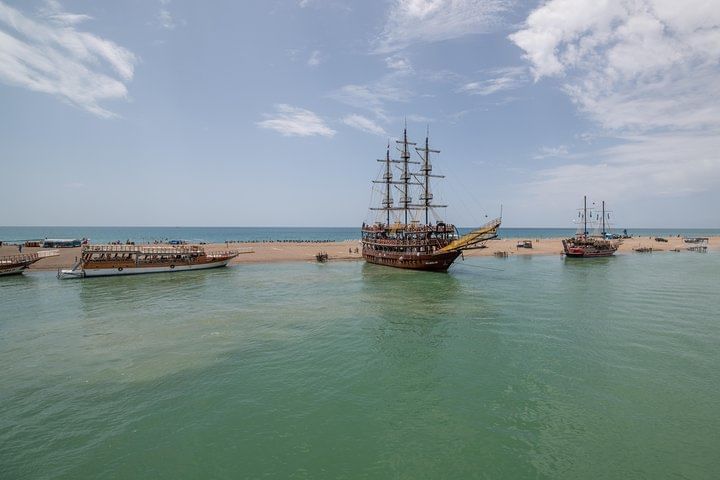 The boat stops there for 45 minutes - 1 hour. Have a great chance to swim both in fresh water of the Manavgat river and coastal salty sea waters. Together with swimming enjoy entertainment program and foam party. Then have lunch onboard and continue sailing through the turquoise sea waters in the direction of Side.